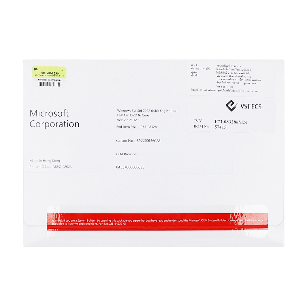 OS (ระบบปฏิบัติการ) MICROSOFT WINDOWS SERVER 2022 STANDARD (ENGLISH - 64 BIT - OEI/OEM DVD - 16 CORE - P73-08328)